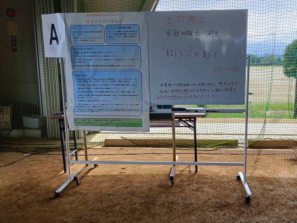 社会福祉協議会の方から、災害ボランティア活動を行う上での注意事項や当日の作業内容について説明を受けました。